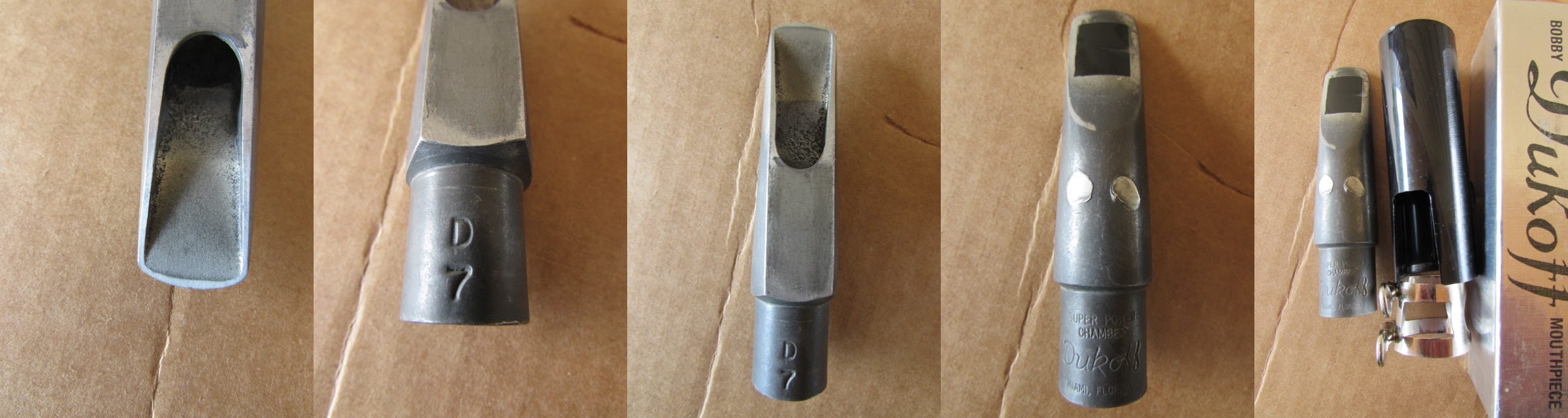 pieces he had,one was a Miami Florida Dukoff metal, the other a metal Otto Link.I didn't like the feel of the metal in my mouth,so I chose the hard-rubber.